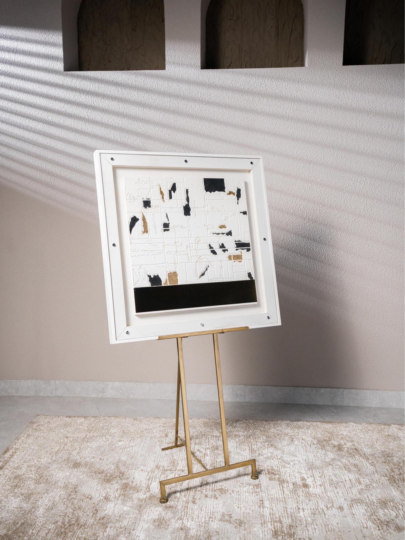This minimal abstract wall art features a blend of white, black, and gold tones, creating a luxurious yet simple look. Perfect for modern homes, offices, or studios, it adds a touch of sophistication to any wall.
