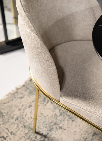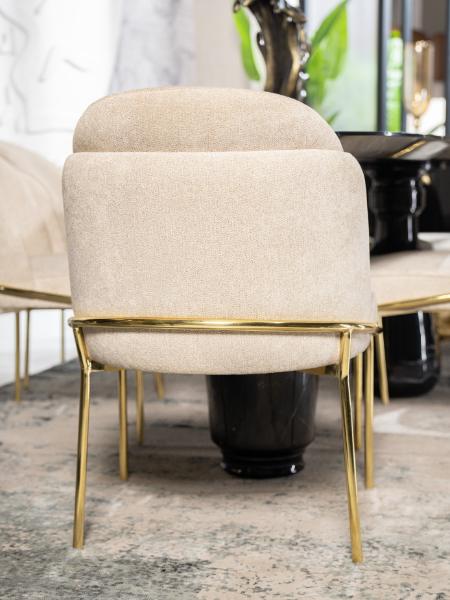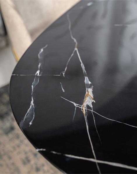 The Obsidian Crest combines sleek black marble with both gold and beige chairs for a modern, elegant dining look. Seating six, it’s perfect for stylish gatherings and everyday luxury.